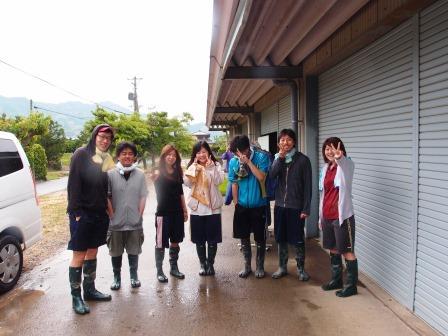 女子学生の泥を流している崔先生。なんだかイキイキしてます。