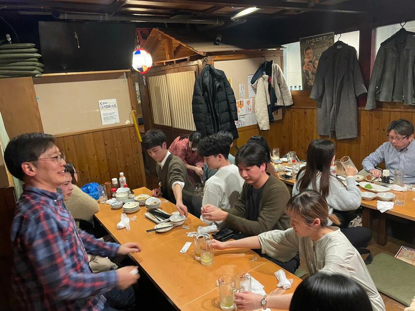 今日は駅で卒論修論お疲れ飲みをしました。研究の集大成をまとめ、素晴らしい発表でした。4年生とM2のみなさんお疲れ様でした!